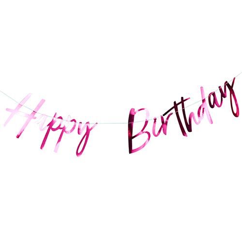 イギリスのパーティーグッズ、パーティー雑貨のブランド「Ginger Ray」(ジンジャーレイ)のガーランド、レターバナーです。ホットピンクがキラキラ素敵でおしゃれな誕生日の飾りつけ!ゴールドやシルバーのパーティーグッズとも相性が良いですね。HappyBirthdayの文字が筆記体でスタイリッシュ♪InstagramなどSNSでも注目の飾り付けですね!角度によってキラキラと反射して、とっても品が良く、様々な年齢のパーティーシーンで大人気です。キラキラの数字のバルーンや、ペーパーファンと組み合わせると素敵です♪誕生日パーティーのお部屋の飾り付けはもちろん、両はしを手に持って写真に撮っても楽しいです。